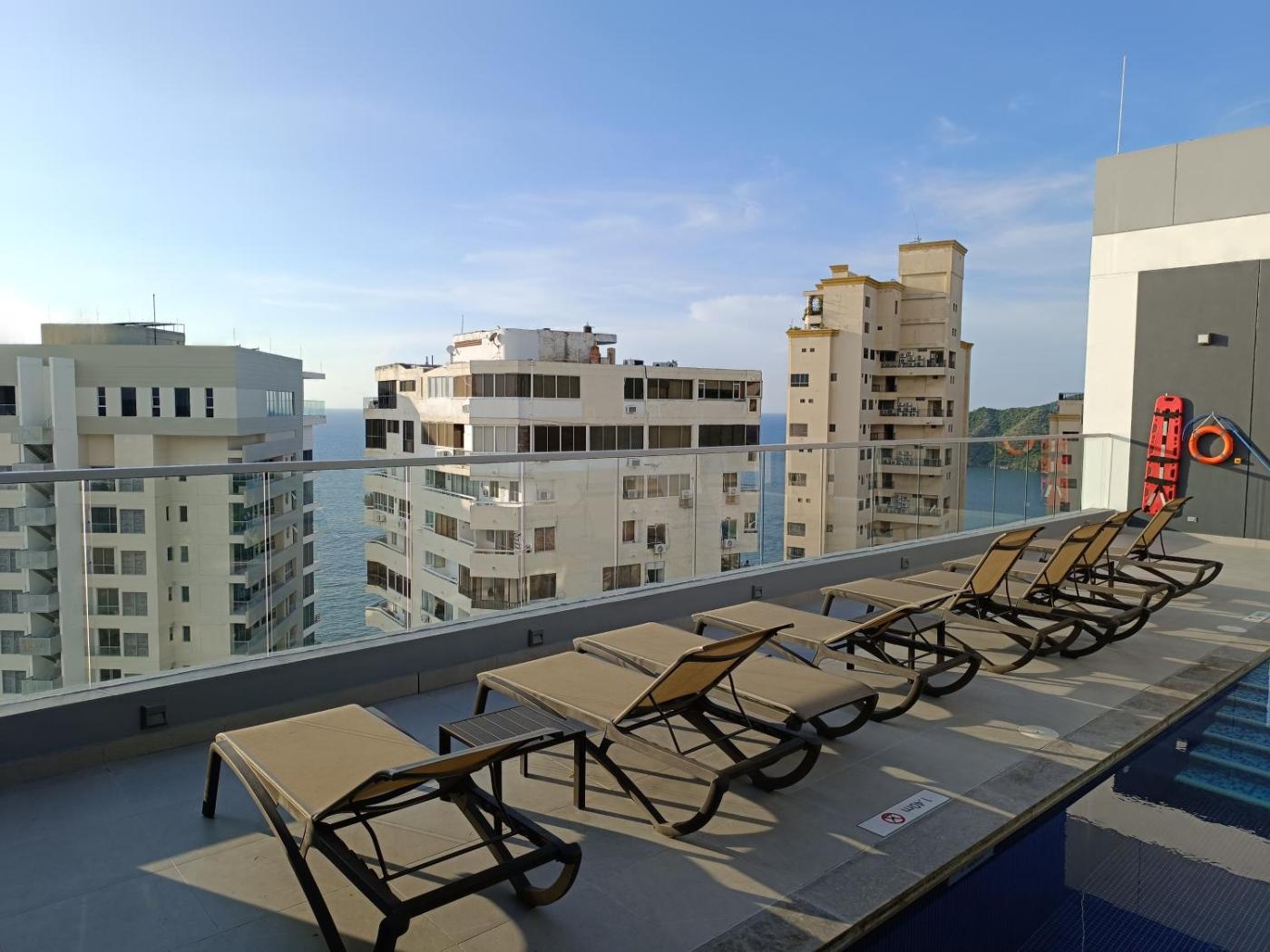 AMBAR ROCA 506 RODADERO, que tiene piscina al aire libre, salón de uso común y terraza, dispone de alojamiento en Santa Marta con wifi gratis y vistas a la ciudad. Este apartamento ofrece parking privado gratis y recepción 24 horas.